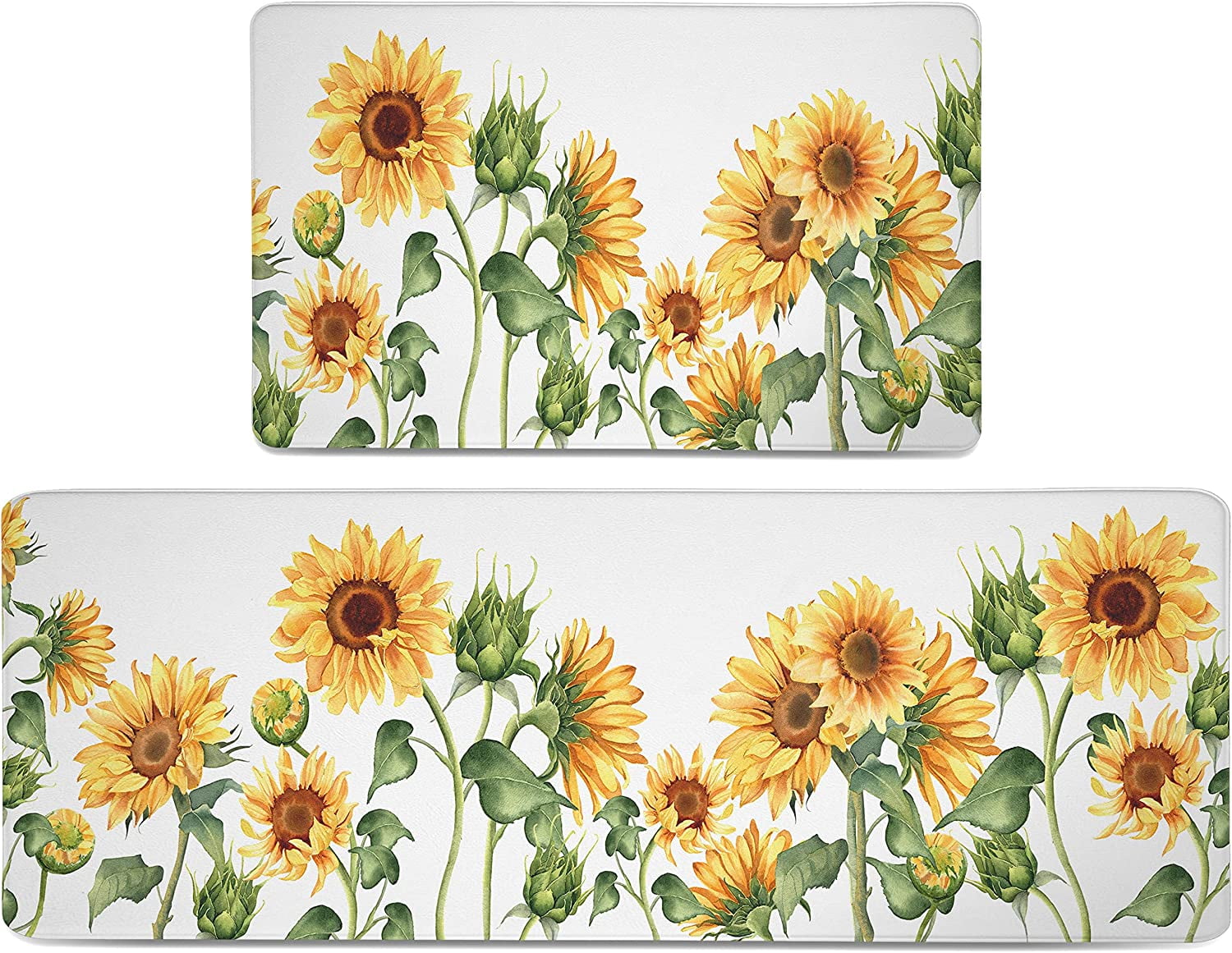Sunflower Kitchen Rugs and Mats Set of 2,Farmhouse Kitchen Decoration